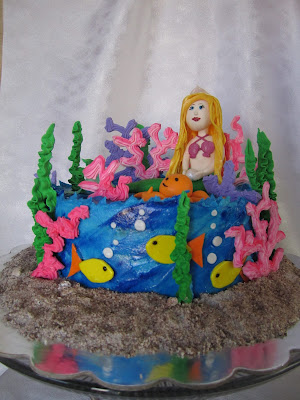 Mermaid made from a mix of marshmallow fondant and gum paste. I gave her hair a nice shimmer.